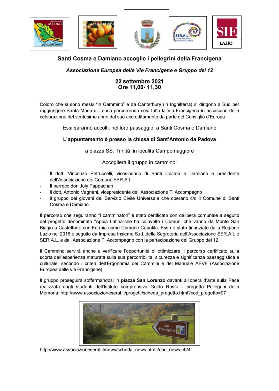 Santi Cosma e Damiano accoglie i Pellegrini della Via Francigena, in occasione della celebrazione