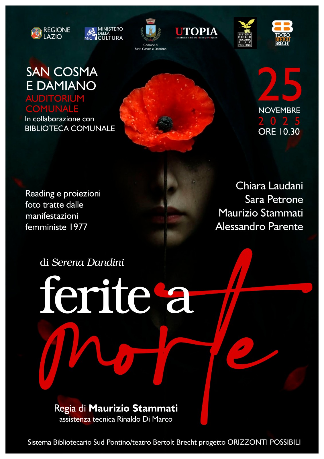 "Ferite a morte" è un progetto teatrale sul femminicidio, scritto da Serena Dandini e adattato in forma di reading dal teatro "Bertolt Brecht", per la regia di Maurizio Stammati. Tutti i monologhi proposti attingono dalla cronaca e dalle indagini giornalistiche, immaginando di dare voce a tutte quelle donne che non possono più parlare.