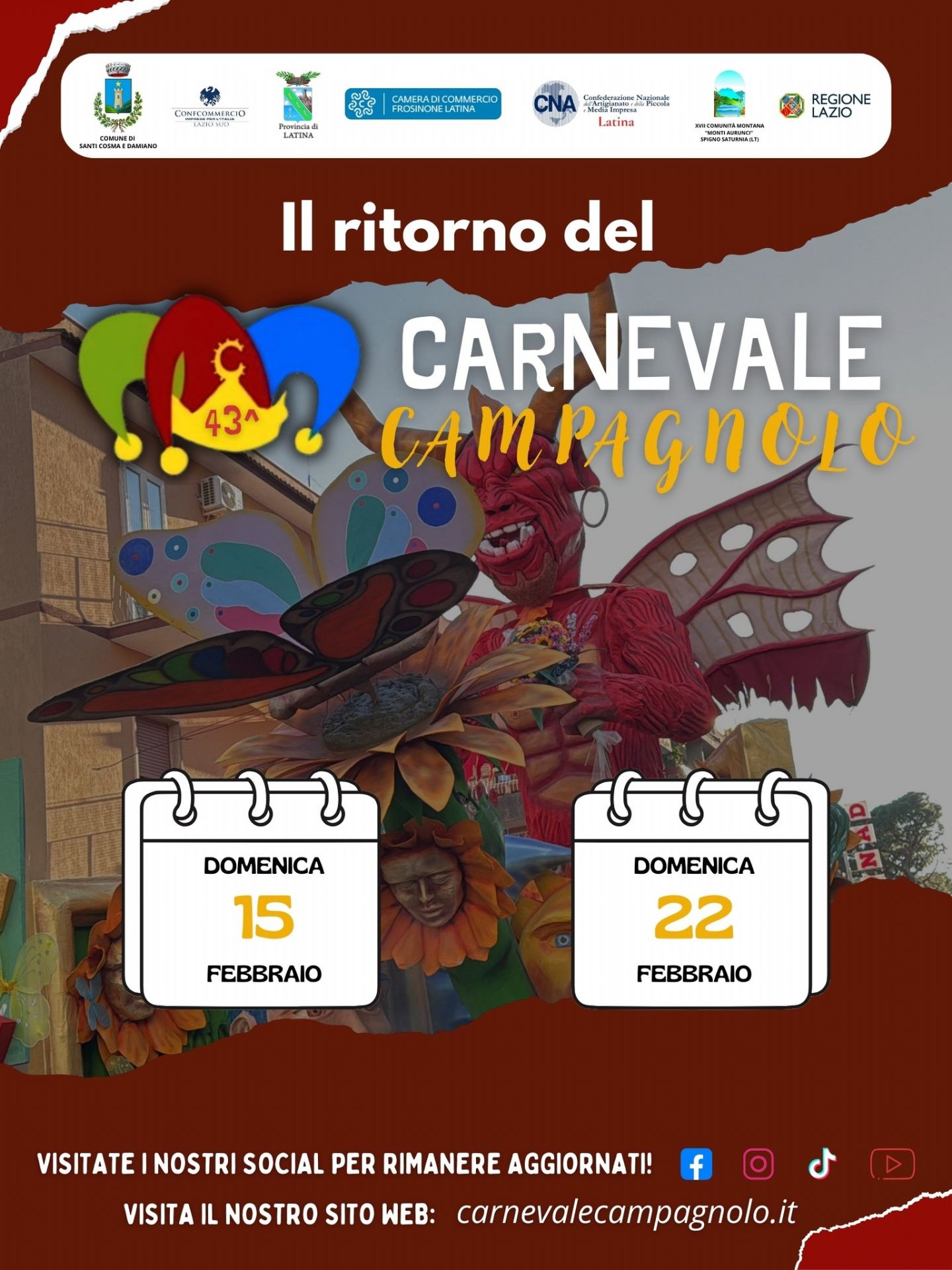Sono previste deviazioni esterne con segnaletica temporanea sulle strade comunali e provinciali per chi non è diretto al Carnevale.