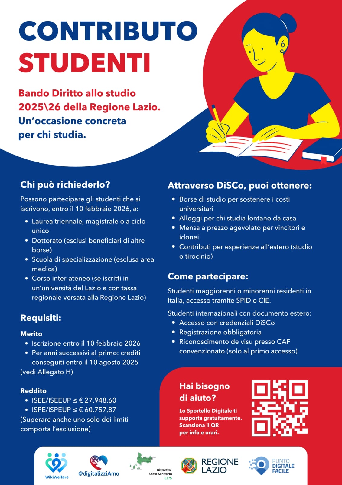 È online il Bando DiSCo Lazio 2025/2026 per il diritto allo studio, un’opportunità per gli studenti universitari della regione Lazio
